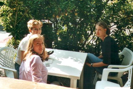 Alegra, Manu und Lene am Frühstückstisch ----Larissa, Alegra, Johanna und ich im Pisaner Baptisterium